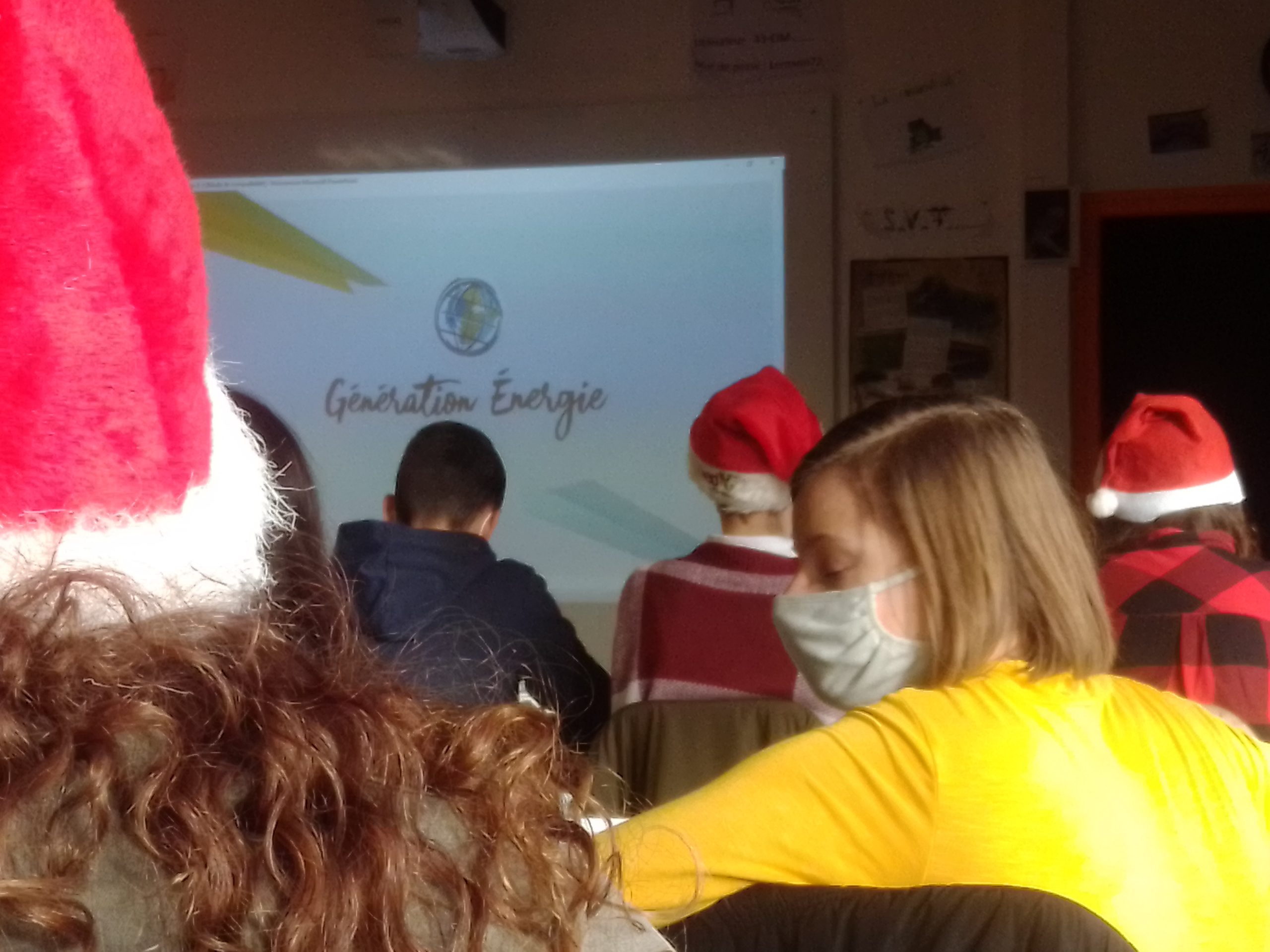 Ce jeudi , nos écodélégués, en mode noël, on bénéficié d’une formation / découverte sur le thème de l’énergie et surtout de l’économie d’énergie. Stéphane de l’association génération énergie est venu nous éclairer sur l’origine de l’énergie