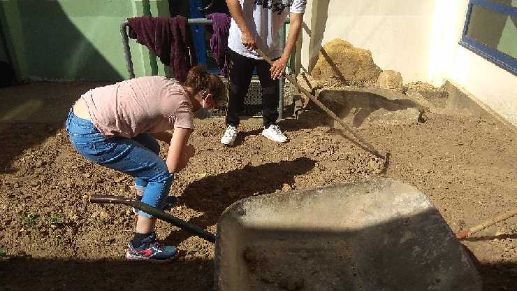 Le club écolo est de retour, aujourd’hui réalisation d’un décors en rondin pour décorer notre abri à insectes et préparation du terrain pour planter fleurs arbustes et pelouse. Mais attention de grands projets sont a venir.